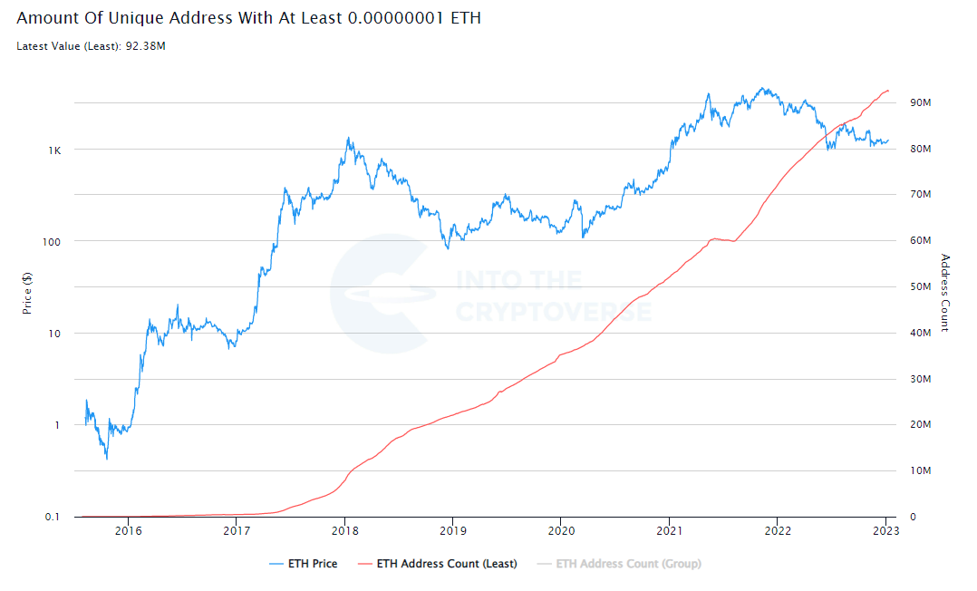 With blockchain technology, it’s quite easy for the public to check adoption and usage of a given network and in the case of Ethereum, if we look, for example, at the number of wallets created that hold some ETH, we can see over the years a very positive trend. (source http://intothecryptoverse.com).